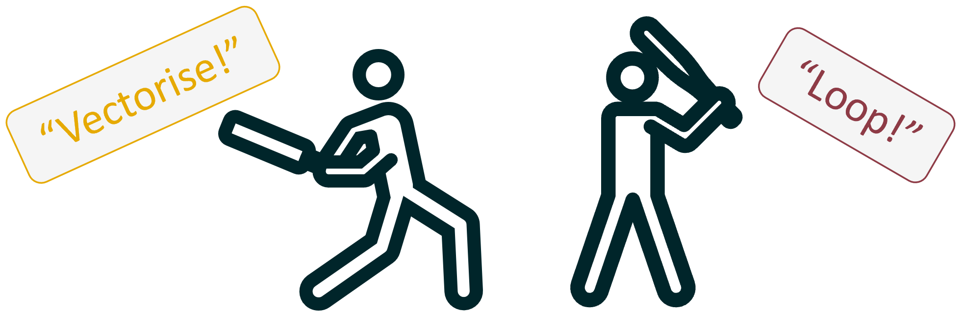 If you are not aware, the tension between vectorise functions and for loops is weirdly high. Some people say that vectorised functions are easier to read and understand, others swear that for loops are a more obvious and legible option. Some people prioritise processing time above all else and will create vectorised functions for everything, others say that in todays’ coding languages it really doesn’t make much of a different.