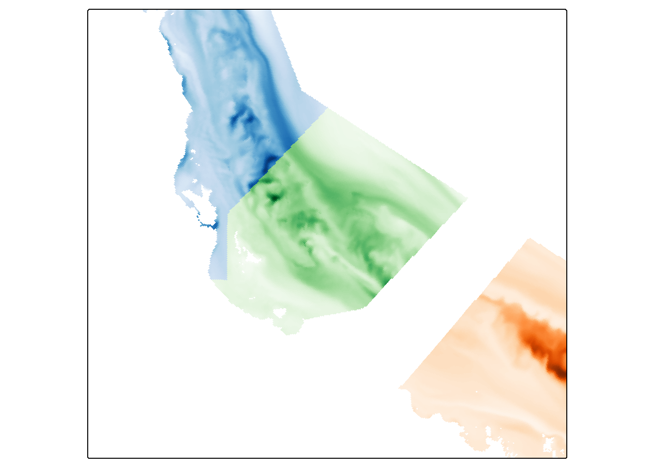 Lets take a look at what we just did by putting each of the datasets into one map, I’ve coloured each location differently: